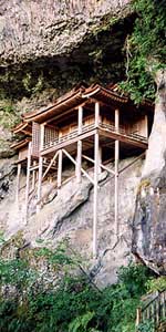 三徳山のはじまり むかしむかし、大和の国(現在の奈良県)に役行者(えんのぎょうじゃ)がおりました。 役行者は、たいそう熱心な修業者で、毎日、山の中で厳しい修業をしていました。 ある日のことでした。 役行者は蓮の花びらを3枚手にとり、「この花びらを、神仏にゆかりのあるところへ落としてください」と空へなげました。 すると1枚は、伊予のくに(現在の愛媛県)の石鎚山へ、1枚は大和の国の吉野山へ、残る1枚は伯耆の国(ほうきのくに現在の鳥取県)の三徳山へ舞いおりました。 さして、それらの山を修験道の行場として開いたことが、はじまりとされています。 写真は投入堂で修験道の本尊、蔵王権現を安置するお堂です。 役行者がふもとで造ったお堂を法力によって断崖絶壁に投げ入れたと言い伝えから投入堂とよばれるようになったといわれています。 三徳山開山1300年です。 継続の灯が美しい日本を照らしだしましょう。 戦後生まれの総理大臣、国も人心も美しい国にしましょう。 そして、それらの山を修験道の行場として開いたことが、はじまりとされています。