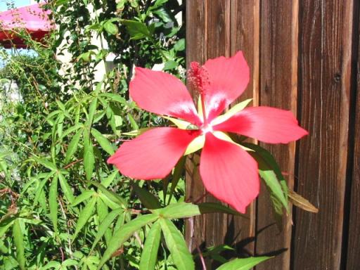 「こうしょっきの花がさきましたよ」 「なにそれ?」 「----」 むつかしい花の名前です。 原産 北アメリカ アオイ科ハイビスカス属 過ぎ去った62年、北米原産の花が今日の長崎の原爆犠牲者の冥福を祈って咲いたのでしょう。 なくなったお隣の看護婦だったお姉さんをおもいだしました。 優しい方でした。 初めて咲いた花も夕方にはしぼみました。 1日花だそうです。 でもまだつぼみがあります。 次の花が又新しくさきましょう。 一生懸命に育ててるのに名前もわきまえずかあさんごめんなさい。 写真にとりちょっとしらべました。