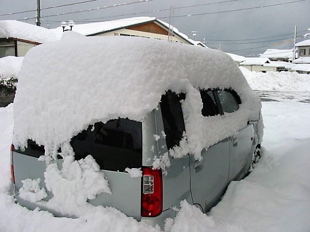 年改まり、ブルーのシート屋根を真っ白にする大雪の見舞い。