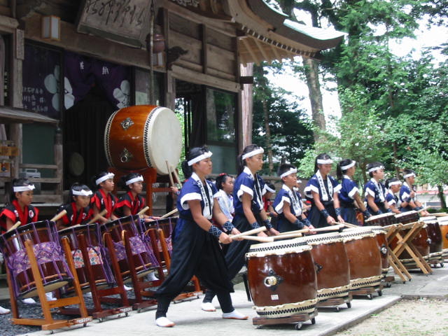 森閑とした、神社の森に勇壮な太鼓の音、乙女の躍動に、参拝の人人はよいしれました。
