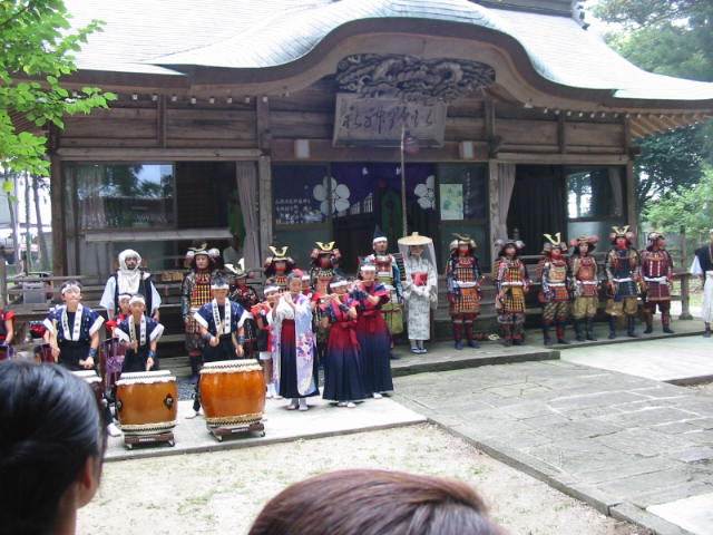 思えば、石の大きな鳥居をくぐり、里見忠義公一行が北野天神さまに入場しました。