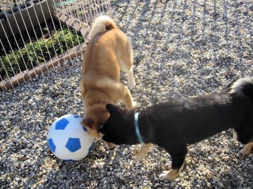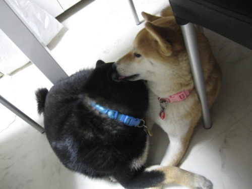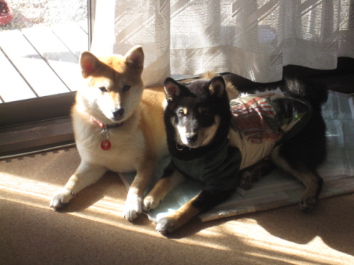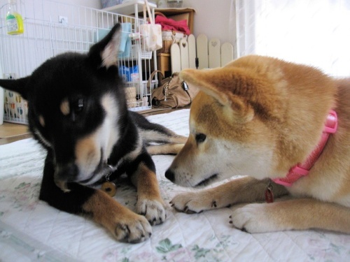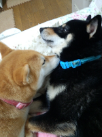こんばんわ♪またまたご無沙汰してます。やっと少し落ち着いてきたので、黒柴テツ(男の子)がやって来ました4ヶ月で、ちょっと大きくなってますが、この見つめる目にいちころでした食いしん坊で、甘えん坊、触られるの大好き、抱っこするとおとなしくなります。こんな、テツですが、ヨロシクお願いします ももはどんな反応するかと思ってドキドキでしたが、最初はお互い様子を伺ってます。少しずつならそうと思い遊ばせてみることにひとつのおもちゃの取り合いになりますテツがカミカミしてる横で、疲れたのかももはコクリコクリこれは、2匹で暴れて、ヒートアップした後にパパさんから怒られももとテツはしょんぼりしてますこれもまた、人の靴下を取り合いしてます僕はももちゃんと仲よくしたいのに、すぐにちょっかいだしてくるんですぅ~ワン まだ、年が5か月しか差がないので、お互いまねっこしたり、喧嘩したり、じゃれたり、ももは抱っこは嫌いな方なのに、テツが来てから、抱っこを要求するようになりました。ちょっとやきもち焼いてるんでしょうね毎日、大変ですが、楽しみも増えて、時間がアッと言う間に過ぎてしまいます多頭飼いは初めてなので、分からない事もいっぱいです。多頭飼いされてる方、良いアドバイスお願いします<m(__)m>それではこの辺で