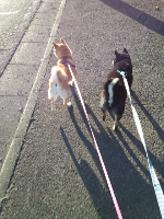 こんにちわ♪すっかり秋めいて気持ちいい朝夕になりましたね(^_^)久しぶりにドックランに行きました。ももとテツも大はしゃぎですヽ(^。^)ノ 入るなりテツは網についてるカマキリ発見!ももはテツを追いかけております(^_^)もも・もお友達のコーギーちゃんに追いかけられています。コーギーちゃんの空中写真が撮れました(*^^)vももの嬉しそうな顔ヽ(^。^)ノまだ、4ヶ月のお友達にご挨拶です。テツはちょっとうぃ~っとしてますね(~_~;)瞬間写真!テツが二本立ち!夏の暑い日の事です。初めてのプールに連れて行ったのですがテツはどうやら金槌のようです。犬かきどころか、バシャバシャ!おぼれてるようにしか見えませんでした(^_^;)ももは水嫌いですが、何とか犬かき出来てプールサイドに着きましたヽ(^。^)ノまた、来年プールは練習が必要のようです(^_^;) それではこの辺で(^_^)/~