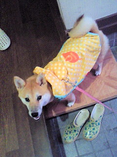 こんばんわ♪昨日と打って変わって今日は良いお天気になりましたね昨日は一日雨で散歩も行けないかと思ってましたが、少し小降りになったので、初めてももにカッパ着せてみました服着たりするのが嫌いなももですが、チョット慣れてもらわないと大変なので・・・意外に、歩いてくれましたが、やっぱり気になるようでしたお天気の方が良いねそれでわこの辺で