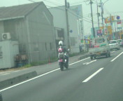 その後の「中年ライダー」達は、何事もなかったように暮らしている。晴れて「大型二輪免許」保持者となって一ヶ月、一向に【中年ライダー】となる様子はない。「今日からはハーレーの佐藤です。」と意気込んでいた元ヤンの佐藤君は、極秘に計画していた、【新車のHarley-Davidson250万円頭金0円の120回ローン作戦】がしっかり物の奥様に露呈し、そして阻止された。彼は作戦実施するのをしばらく見合わす事にしている。恰幅のいい堂々たる体躯に似合わず、「石橋を叩いて渡らない」タイプの小山くんは、新車・中古車を含めたおびただしい数のHarley-Davidsonの中から、大枚200万円也を投じる値打ちある一台を見つけようと、日々情報収集と研究に余念がない。「もうお腹いっぱいになったわ。」とは彼の言葉である。彼らが【中年ライダー】となる日が、はたしてくるのだろうかと思う。まぁ別にならなければならないわけもない。免許が取れたので、ひとまず一服である。佐藤・小山の「大型二輪免許」取得を聞いて、黙ってられない男が一人いる。その男の名は藤本直也、やはり42歳である。佐藤・小山がHarley-Davidsonに乗ると聞いては、藤本が平静で居れようはずがない。もう黙って見てはいられないのである。その日のうちのバイク屋へ赴き次の日には金を払っていた。返す刀で、自動車教習所の門を叩く。そう彼はこの時点でまだ「大型二輪免許」を持っていないのである。この男が見せる「速さ」は尊ばれるべきである。「欲しい」と「手に入れる」が同時にやってくる点にある。普段は「ダラーッ」っとして、物事に興味を示さない彼だが、一旦「事が起こった」時には恐るべき行動力を見せる。嫁さんも情報収集も彼には関係ないのである。いままでずっとそうして生きてきた彼は、自分のやり方に自信を持っている。かくしてこの3人の中で最も早く、Harley-Davidson乗りとなったのは、藤本直也その人だったのである。今日、その藤本君の下にHarley-Davidson FXR '87が納車された。「ハーレー来たから保険入るわ。」藤本君からの電話で、彼の会社へ赴くと、そこには、全身を黒く塗装されグッと低く身構えるようにして、1台のHarley-Davidsonが居る。「来たよ♪」と私。「おお来たな♪ チョット待ってさっきからエンジンかからんのよっ!」藤本君はそう言いながら、スターターを回す、「キュキュキュルキュルルルルル…パン…ボボボ…パン…パパン」とエンジンはかかりそうな気配すら見せない。「おかしいなぁ…さっきまで掛かってたのに…キュルルルルル…パン…パスン」藤本君はいったんスターターを止め、私に向かって、「チョーク引いてみよっか?」と問う。「こんな真夏にっ?よけー掛からんよっ」と私。「おっかしいなぁ?なんでかなぁ?」と藤本君は再びスターターを押す、「キュルキュルキュキュキュ…パン…ボボボ…ドン…ドドン」「もうっなんで?壊れとん?(バイク屋に)取り来さそうかっ!」「プラグは?」と私。「見た!掃除したしっ!」語気を強める藤本君。「火飛んでた?」と再び私。「火?飛ぶ?」と素っ頓狂な声で藤本君。「ちょっといい?」と、藤本君の返事を聞かず、プラグを外して再びスターターを回す、「やっぱり。このプラグ1こ死んどるよ。」と私。オートバイ乗りなら、ちょっと昔なら自動車でも替プラグは積んで走ってたような…ちょっと昔と言っても、父親の【トヨタパブリカ】の頃だから、ちょっとじゃないかもしれないが、「ありがとありがと♪」初めて文明人を見た原住民のような視線を受けながら、彼の会社を後にする私。私とて決してメカに強いわけではない。全く機械の事をわかっていない…もしかしたら解ろうとすらしていない彼にもオートバイを存分に楽しんでもらい。彼らが、颯爽たる【中年大型二輪ライダー】になる日が楽しみである。かえる道々達人を発見した。これこそがオートバイを楽しむ。単車の醍醐味だというような人♪無断で写してゴメンナサイ。でもすごく楽しそうで、気持ち良さそうだ。なにも大排気量にこだわる必要も無ければ、ブランドやスタイルもどうでもいい。自分が楽しければ◎だ。こんな風にオートバイを楽しむことが出来たらどんなにいいだろう。ちびっ子のヘルメットカッコよかったもう少し大きい写真で取ればよかったな。