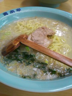 最近家のそばにラーメン青木亭ができたので隙があれば?行ったりします。(変な日本語w)本日は普通の塩ラーメンにしやした。定番の醤油よりさっぱりめ。うまし。次は味噌その次は黒最後は赤に挑戦だーーー!!