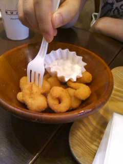 うちにです。昨日は鶴見、川崎までおでかけでしたがフットワークの軽い彼女は、そのあと埼玉県の我が家に。話したりDVDみたり二人でパックしてみたりとわいわい過ごすこと6時間。午前3時過ぎに就寝。結構遅くなったので、今日はどうするかなと思ったのだけど思ったよりみんなアグレッシブに動けそうな雰囲気だったのでレイクタウンに行くことにしました。いやぁ、6時間ぐらい歩きまわりましたぜ。最近、買い物大好きなわたし。かなりの買い物をまたしてしまった・・・・・でも、なんとかなるでしょっっと。最後にKOZU氏が食べたことがないということだったのでKUA’AINAへポップコーンシュリンプともちろんバーガーも食べましたよ。KOZU氏『おいしー、しあわせぇ』うん、よかったよかった。