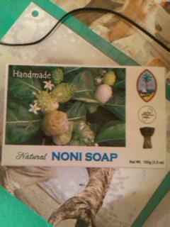 以前、グアムに旅行に行かれた方に頂きました、ノニ石鹸ノニって石鹸もあるんですね。よく飲み物とかサプリメントとかで売られているのはみますが。えっと洗顔石鹸とありました。BODYもオッケーともありましたが(笑)いいにおい。すごく好きなにおいです。でもでもでもなんか顔、つっぱってる?!乾燥肌の人が使ったらたぶん一網打尽だ(笑)・・・・BODYに使うことにしましょうか(汗)海外のものはなかなか難しいですね。