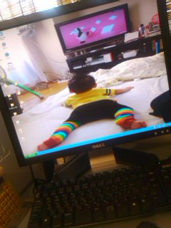 私のパソコンの壁紙。かわゆし。ちょいと横に延ばされちゃっているけども(笑)おしりが特に。おばか(おばばか)は今日も元気です。
