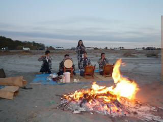 7時が初日の出というので、6時半ころ家を出たら、もう周りは明るく、時すでに遅かりしー。海岸に行くと、去年の元旦に知り合いになったY町のお囃子連と再会。カメラマンをやったご縁で、豚汁をご馳走になってるうちに、初日の出がいよいよお出ましで、演奏再開です。 上昇して行くお日様を鼓舞してるんですね。初めてお囃子っていいと思い、感激しました。 雲間からのぞく初日の出です。海水の温度の方が高くて、海面から水蒸気が立ち込めているのが神秘的です。 今日は予報通り雲が多く、ここであきらめました。 明るくなってから行ったのでは、何にも面白くないので、来年はお囃子連と同じ5時半頃に出掛けたいと思います。 皆さん、今年もよろしくお願いします。