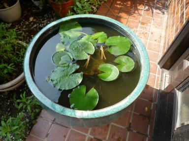 去年ホームセンターで買った睡蓮の苗が、初夏を迎え、どんどん勢いを増して来ました。途中世話が出来なかった時、酷暑で枯れそうになった時もあったのですが、睡蓮鉢の深さのおかげで水の揮発が少なく、何とか今まで乗り越えて来ました。あんまり栄養もやってないのに、2年目ともなると勢いが違いますね。ボウフラ予防のため入れたメダカも、殆ど餌をやらないのに、不気味なほどに大きくなってます。自然というのは、あんまり栄養がなくても自立出来るものなんでしょうか? やっぱり人間って、無駄に食べてるんですかね?