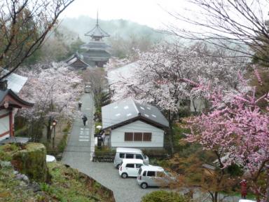 夜立ちのバスに乗って、早朝吉野山に着きました。残念ながら雨模様で、戦意喪失気味でしたが、色々な見どころのうち、西行庵と歌碑を目指そうとしました。でも地元のお店に人に聞いたら、上千本までケーブルバスに乗ってから、さらに一時間は歩くということで、今回は断念しました。やはり泊まってからゆっくり目指した方がいいみたいです。それにしても西行さんというのはえらい山奥に住んでたものです。仕方なく中千本までの往復をのんびり散策しました。でも今年は寒かったので、山桜が咲いているのは下千本あたりだけでした。吉野葛のくず餅を食べたり、柿の葉寿司を買ったりー。それにしても桜の季節の吉野山は妖しいものでした。やはり霊山というものだと思います。桜の咲く頃にここで死にたいと仏様にお願いした西行さんというのは、意外と贅沢な人なんだなあと思いました。