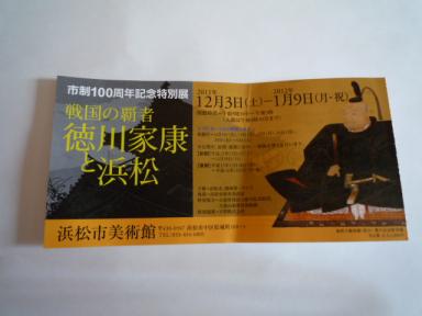 浜松市は今年市制100周年ということで、ゆかりの大人物「家康公」にちなんだ、「戦国の覇者 家康と浜松」展が開かれています。あんまり興味がなかったのですが、引かれる様な気がして、行ってみました。浜松ゆかりの人物というよりは、治世の長さから言って、日本最大の人物ですよね。しかしこの人、あんまり地元では人気が無いらしく、遠州に住んでもう30年近く経つのに、だ~れも「家康さんが・・」と言った人がいません。大阪では、知らない人(後世の人)までが、 「太閤はんは・・」と言うらしいのとは、エライ違いです。私が聞いた唯一関係した話と言えば、処刑された築山殿(最初の正夫人)の「太刀洗の池」の話で、そこが病院の駐車場にあるため、夜の勉強会では本当にぞっとしながら側を通ったものです。しかもその処刑に関係した家臣の家系は、みな不幸になって滅びてるらしい。(だって家来だからしょうがないじゃん!と私は思うのですがー)話がそれましたが、日本に平和をもたらした家康さんは、理不尽なまでに地元民の敬愛の対象になってないんですね。しかも今回知ったことには、家康さんは29歳から45歳までの青壮年期17年間を、ここ浜松城で過ごしたというではありませんか!殆ど試練だらけのその時代を経て、最終的には戦国の覇者となったため、今は「出世城」と景気のいい名前で呼ばれているというのにー。なぜなんでしょうね?2フロアに渡って展示されたゆかりの展示物で印象に残ったことと言えば、家康さんは禅宗の高僧に教育を受けたということー。(館内で座像が一番大きかった!)戦国武将たちは常に筆で書きまくっていたということー。(向井理さん♪演じた秀忠さんは、ほんとに凛々しい顔をしていて、事変があるたびに書きまくっています。)あと兜の意匠が大胆で、ダイナミックなことですね。 「縮み志向の日本人」と言うのは、どうも太平の世になってから形成された性格のような気がします。戦国武将の総大将たちは、揃って個性派ぞろいですものね。正室、側室、姫たちの肖像画もあります。この時代まではそんなに女の地位も低くなかったようです。 実は、この展覧会は2回に分けて行われていて、前期はもう終わっており、全体像を見てないので、あんまり大したことは言えません。が、見終わって思うことは、そんなに家康さん、悪い人じゃないみたいってことですね。よく「狸おやじ」とか揶揄されるけど、百戦錬磨の武将たちが、陰謀作術のすべてを尽くして生き残りを図る時代に、ただのいい人だったら、そりゃ阿呆でしょう?織田信長、豊臣秀吉と天下人が移ろう中で、神が何故この方を「戦国の覇者」に選ばれたか、非常に興味のある所です。 見終わって帰り際、二人の息子に戦国絵巻のクリアファイルを、お土産に買いました。「関ヶ原の戦い」はあんまり人物が多すぎて、すっきりした絵柄の方を買ったら、何とそれは家康さんの初陣の近くを描いたものでした。(家康さんは描かれてない) 企業人となった息子たちは、これからどんな戦争へ向かうのかー?戦後65年以上続いた平和に、「グロバリゼーション」という黒船が近づいているような気がします。社会の中枢をなす中高年の殆どがIT化しようとせず、英語もマスターしようとしない日本が、果たして生き残れるのか?住所、電話番号、FAX番号だけの、紙の年賀状ばかりの現実を知り、わたしも少しばかり不安を覚えた年の初めでした。