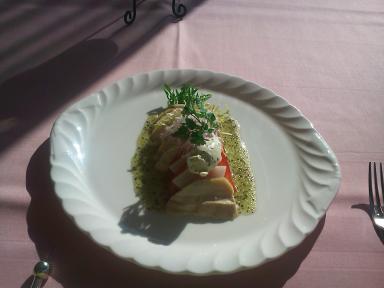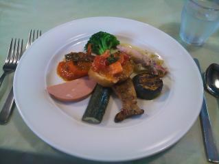 職場の忘年会がないようなので、一人忘年会ということで、高台にあるホテルの[温泉+フレンチ]3900円というセットに行ってみました。両サイドに鉢植えの薔薇(造花ですが)が飾られてある長~いアプローチを抜け、エレべーターで10Fまで。素晴らしく見晴らしのいいスカイラウンジで、まずお食事です。 梨とチキンの 前菜梨の食感が爽やかで、今まで食べたオードブルのうちで一番おいしかったです。 メインディッシュのスズキのポアレ実際には、スズキの下に何種類もの野菜のソテーが隠されており、複雑な味付けでした。 この後バニラビーンズを使ったアイスを含んだデザートとコーヒーで、とても温泉とセットの価格とも思えません。だって温泉だけでも1500円するんですよ。 その後温泉にいらした中年女性グループに、このレストランのことを宣伝して、ゆっくりと温泉を楽しみました。 それにしてもフレンチレストランと温泉って、どこにもない不思議なセットですよね。