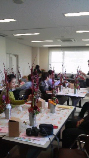もう今年最後かもしれない良い天気。 組合富山支部女性部のプリザーブドフラワーアレンジメント教室をしました。 グリーンベルの川上先生と15名の賑やかな生徒たちの講習会になりました。 プリザーブドフラワーにワイヤーをかけて下準備を済ませ、クリスマスにもお正月にも飾れるアレンジメントを作りました。