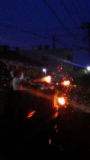 昨日の夜、いたち川の橋の上で、お盆の迎え火、オショウライをしました。