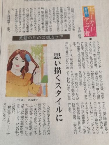 今日の北日本新聞より 年齢と共に衰えてくるのは、お顔だけではありません。 髪や頭皮だって同じです。 髪の変化は分かりやすく 白髪が出てきたりクセが強くなってきたり、 コシがなくなったり細くなりボリュームが出なくなってきます。 髪だけのせいではありません。 頭皮が疲れたり老化してくると血行が悪くなって栄養たっぷりの髪が育ちにくくなります。 ブラッシングやシャンプーは丁寧に。 また、傷をつけないように。 そして、男性も女性もヘアートニックや育毛剤などをつけて頭皮を柔らかく保つと良いですよ。 みかさんの頭皮マッサージも気持ちいいです😁 カットやお顔そりエステの際 プラスメニューでご利用ください🙇 てらしま みか ヘアーサロンてらしま 076-424-0655 富山市石倉町2ー22