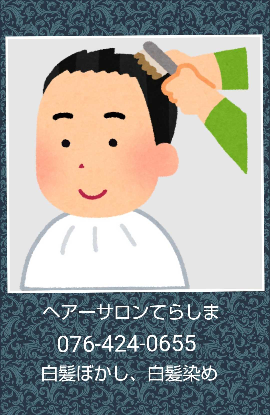 ヘアーサロンてらしまホームページhttps://sites.google.com/view/toyamaterasima/homeこんにちは!お顔そりエステ♪てらしまみかです。午前中バタバタと忙しくなりました。ご来店のお客様、ありがとうございました!てらしまのお客様で、最近多いのがカットに合わせて、白髪ぼかしをされるお客様です。そんな年代のお客様が多いのですがチラホラ増えだした白髪を、黒く染めるのも若々しいですし真っ黒にするのに抵抗がある人むけにグレー位までに染める、白髪ぼかし。どちらも、おすすめなんですよ。やっぱり、染めると若々しくなれますよ。白髪が気になってきたなら一度お試し下さいませ!お気軽にご相談下さい。新しい生活様式で。皆様のご来店お待ちしております。ヘアーサロンてらしま076-424-0655富山県富山市石倉町2-22
