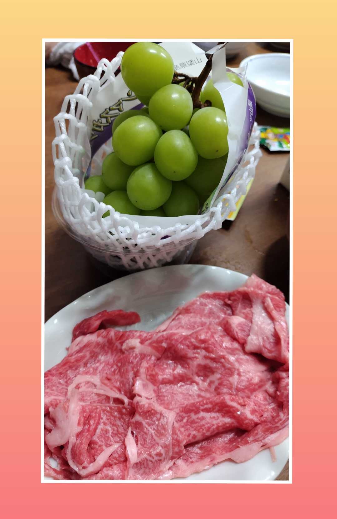 ヘアーサロンてらしまホームページhttps://sites.google.com/view/toyamaterasima/homeこんにちは!お顔そりエステ♪てらしまみかです。今日から、大和デパートの地下壱丁田肉惣菜がリニューアルオープン。長男のお嫁ちゃんが肉買って来ます!って、美味しいお肉とマスカットを買って来ました!何して食べましょうか?みんなで、多数決の結果、すき焼きで。デザートは、マスカット。薄切り肉だけど、大きくて柔らかでしたよ。ちょっとお安く買えたのかな?お腹いっぱい、大満足でした。新しい生活様式で。皆様のご来店お待ちしております。ヘアーサロンてらしま076-424-0655富山県富山市石倉町2-22