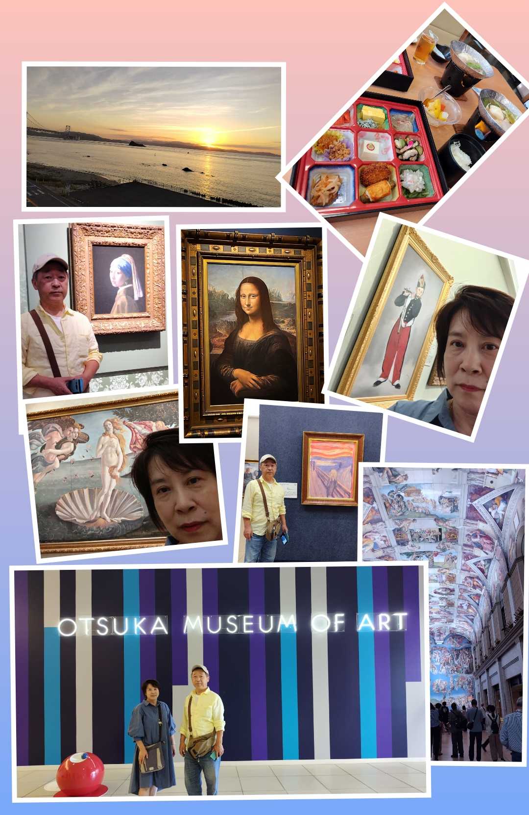ヘアーサロンてらしまホームページhttps://sites.google.com/view/toyamaterasima/homeこんにちは!お顔そりエステ♪てらしまみかです。徳島県鳴門に泊まって、朝日と共に活動開始!朝食の鯛茶漬けで、チャージの後は近くの大塚国際美術館で芸術鑑賞!とにかく、大きくて広い、この美術館。世界の名画を、陶板で原寸大に複製して間近で見れるし、写真も撮り放題。イタリアやフランス、スペインなどなど世界中の美術館や聖堂に行かなくても、鑑賞できます。本物ではないけど、教科書や美術の本で見たことがある絵画の大きさや、迫力が感じられますよ!2時間ほど、足ばやに見た後富山に向かって、走る走る!帰りは、以前から通ってみたかった舞鶴自動車道を走って来ました。高速道路はどこも、途中、あちこちで工事などがありましたが無事夕方7時に富山インターで降り、締めの夕飯は、富山のスシローで軽ーく。ハードでしたが、大満足の2日間でした。明日から、お仕事です。新しい生活様式で。皆様のご来店お待ちしております。ヘアーサロンてらしま076-424-0655富山県富山市石倉町2-22