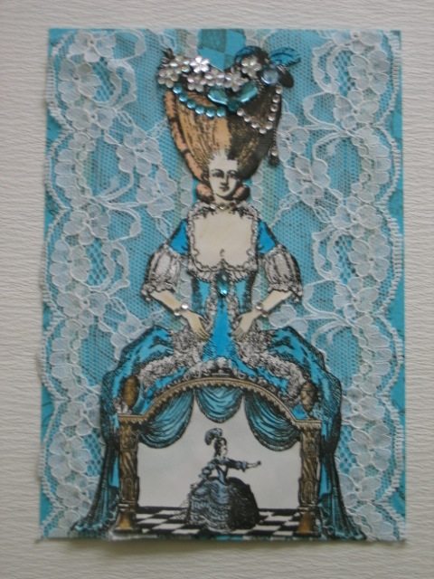 今日のカードはCiao*Carinaさんで購入したCharacter ConstructionのQueen of Tartsシリーズno.5のシートを使ったカードです。使用ペーパー:ポストカード(マーメイド)、普通紙使用スタンプ:Character Construction使用インク:Versafine、MEMENTO Dual Marker、Mica Colorその他:レース、ラインストーン