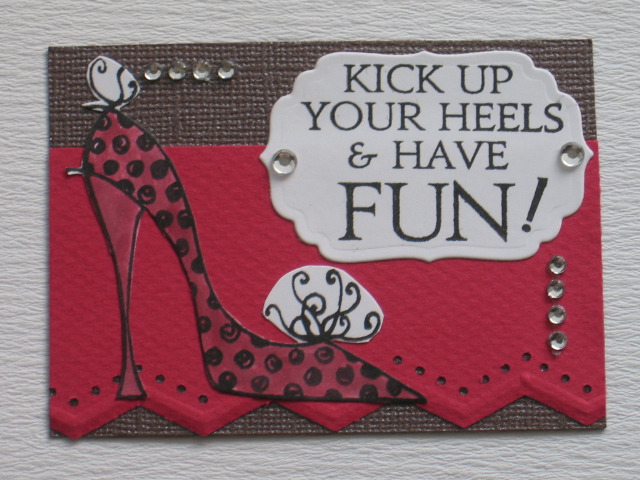 今日のカードはハイヒールのATCです。こちらのATCは私の大好きなブログ、まきJOさんのブログの2010年2月1日掲載の作品を真似て作りました。使用ペーパー:バジル紙、色画用紙(100均)、普通紙使用スタンプ:HeroArts使用インク:Versafine、MEMENTO Dual Markerその他:ラインストーン
