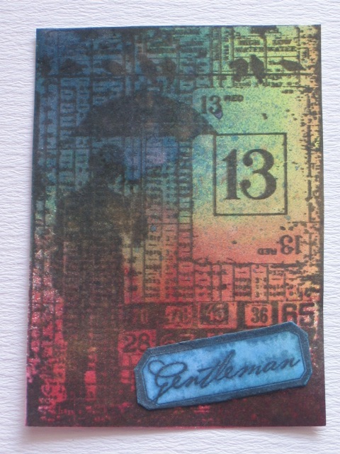 今日のカードはmixiの中の『スタンプでATC!』というコミュのATC Challenge ♯53「3原色」 です。1.色の3原色(黄色・赤紫・青緑)を使う 一応上のように書いてますがわかりやすく「黄色・赤・青」でも結構です^^ こちらを使ってカード作りをお願いいたします。 2.文字(文章など)を入れる どこかに文字を一つでもいいので入れてください。 というお題です。私はGlimmer Mist3色を普通紙に吹き付けてTimのスタンプをVersafineで捺しただけの作品です。文字はDarkroom Doorを使いました。使用ペーパー:普通紙使用スタンプ:Stampers Anonymous(Tim Holz Collection)、DarkroomDoor使用インク:Glimmer Mist、Versafine