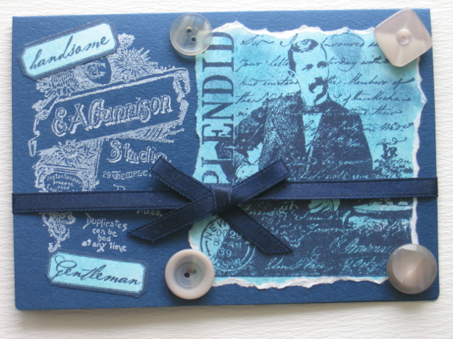今日は父の日ですね。今日のカードはCiao*Carinaさんで購入したDookroom DoorのDashing Gentsのスタンプを使ったHappy Father's Day!のカードです。Ciao*Carinaのオーナーのrina53さんも同じスタンプを使ってすてきな父の日のカードを作られていて、ブログに紹介されています。同じスタンプを使ってもこんなに作品が違います。勉強になります。使用ペーパー:カードストック、普通紙使用スタンプ:DarkroomDoor使用インク;Versafine、DistressInk、BRILLIANCEその他:サテンリボン