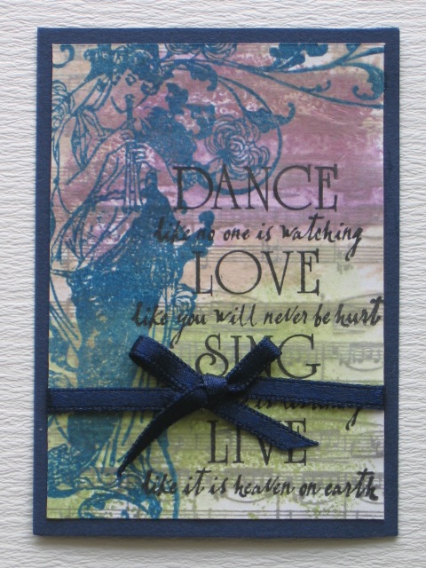 今日のカードはmixiの中の『スタンプでATC!』というコミュのATC Challenge ♯57「♪music♪」 です。今回のテーマは「♪music♪」です。 1、楽譜を使う。 スタンプでもいいし、楽譜のPPでもいいです。 2、リボンを使う。ファイバーや紐でもいいです。 どこかにスタンプを使って下さい。 というお題です。3作品、全て同じスタンプメーカーのスタンプで作製しました。3枚目は以前ATC交換会に2回音楽のATCを作った時に残っていた試作品パーツを使って組み合わせて作製しました。私は楽器や楽譜を使うといつも同じ色合いや雰囲気になるので今回は違う雰囲気や色合いでと思って考えましたが、結局同じような感じになってしまいました。使用ペーパー:普通紙、ミ・タント紙、トランスパレンシー、NTラシャ 他使用スタンプ:Darkroom Door使用インク:WaterColor、enbossing powder、enbossing Ink、 Versafine、MEMENTOその他:リボン