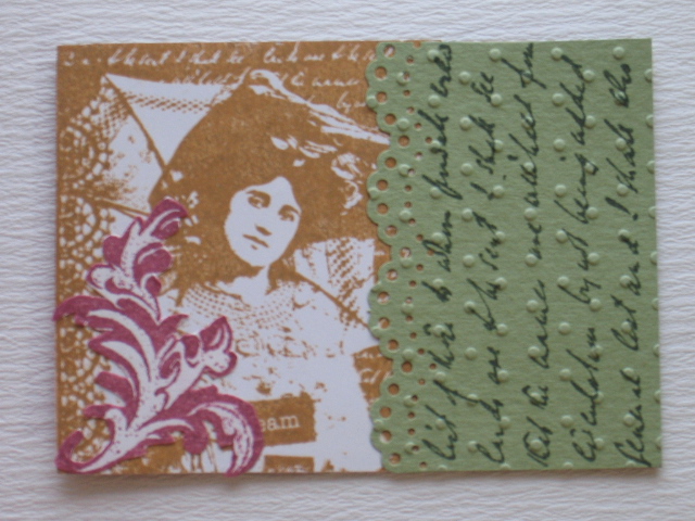 今日のカードはCiao*Carinaさんで購入したDarkroom DoorのLovely Ladiesのスタンプを使ったATCです。使用ペーパー:普通紙、ミ・タント紙、モダンクラフト紙使用スタンプ:Darkroom Door使用インク:Vresafine