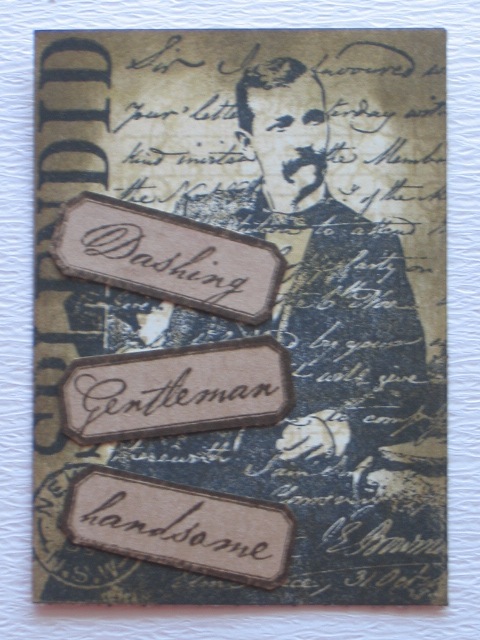 今日のカードはCiao*Carinaさんで購入したDookroom DoorのDashing Gentsのスタンプを使ったATCです。使用ペーパー:パターンペーパー、モダンクラフト紙使用スタンプ:DarkroomDoor使用インク;DistressInk