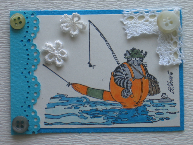 今日のカードは昔、こどものかおで購入したクリバンのスタンプを使ったATCです。使用ペーパー:ミ・タント紙、普通紙使用スタンプ:こどものかお使用インク:MEMENTO、コピックペンその他:レース、ボタン