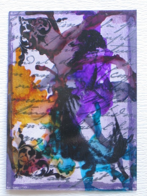 今日のカードはBrownie-Brownieの絵の具のスタンプを使ったATCです。使用ペーパー:普通紙、ミ・タント紙使用スタンプ:Brownie-Brownie、 Stampers Anonymous(Tim Holz Collection)使用インク:DistressInkその他:マスキングテープ