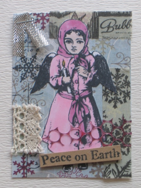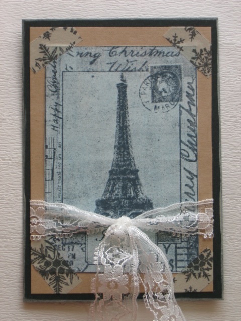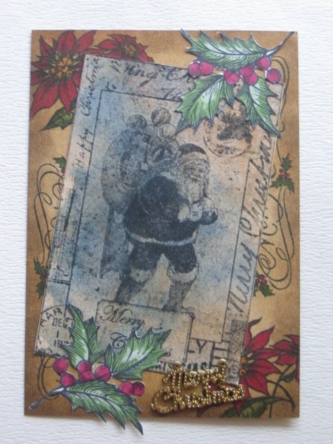 今日のカードはCiao*Carinaさんで購入した、Character Construction/Vintage Christmas No.2のシートを使って作ったATCです。もうすぐクリスマスですね。また今年もいろいろクリスマスのカードやATCを掲載していきます。お楽しみに!えっ、楽しみじゃないって?そうでない方もお付き合い下さいね。使用ペーパー:普通紙、ミ・タント紙使用スタンプ:Character Construction使用インク:MEMENTO、コピックペン、DistressInkその他:レース、リボン