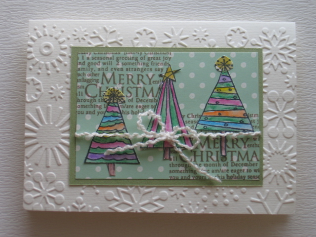 今日のカードはHeroArtsのスタンプを使ったChristmas treeのカードです。使用ペーパー:カードストック、ミ・タント紙、パターンペーパー、 普通紙使用スタンプ:HeroArts使用インク:MEMENTO、水彩色鉛筆その他:毛糸