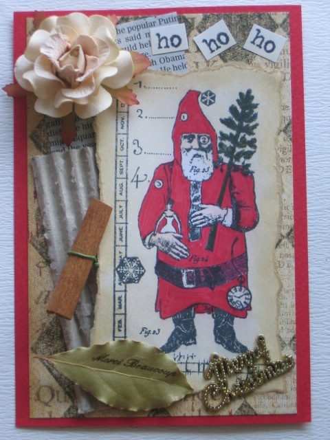 今日のカードはCiao*Carinaさんで購入した、Character Construction/Vintage Christmas No.2のシートを使って作ったカードです。使用ペーパー:カードストック、普通紙、パターンペーパー、英字新聞 段ボール使用スタンプ:Character Construction 他使用インク:MEMENTO、コピックペン、DistressInk、StazOnその他:フラワー、シナモンスティック、ベイリーフ、クリスマスプレート