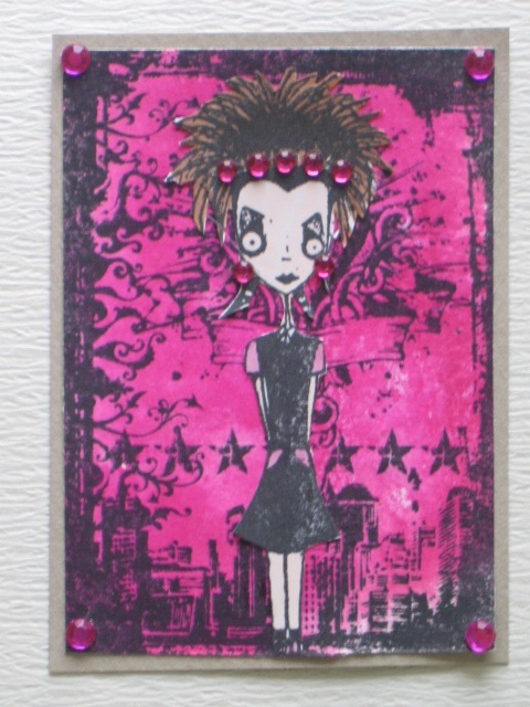 今日のカードはCiao*Carinaさんで購入した、Stampotique Originals/Spykeeのスタンプを使ったATCです。使用ペーパー:普通紙、ミ・タント紙使用スタンプ:Stampotique Originals、 Stampers Anonymous(Tim Holz Collection)使用インク:MEMENTO、コピックペン、IMPRESSその他:ラインストーン