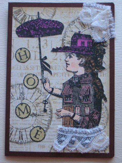 今日のカードなMagentaのImagine Girlのスタンプを使ったカードです。使用ペーパー:カードストック、普通紙使用スタンプ:Magenta、Stampers Anonymous(Tim Holz Collection)使用インク:Classigue、DistressInkその他:毛糸、レース