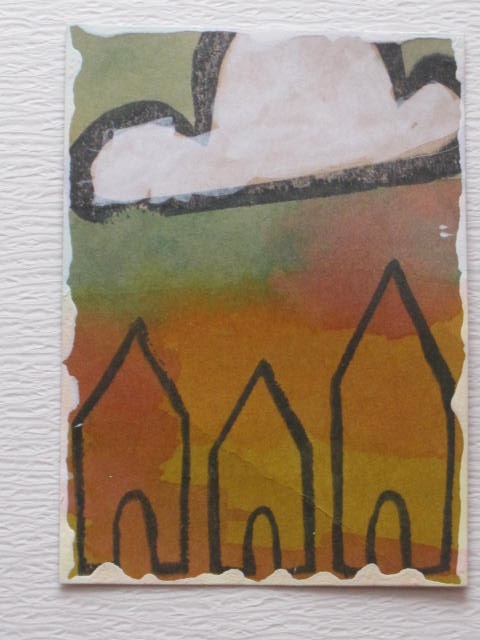 今日のカードはPaperbag StudiosのIn a Rowのスタンプを使ったATCです。Paperbag StudiosのGalleryで作品の参考をしました。(楽しいGalleryです)使用ペーパー:モダンクラフト紙使用スタンプ:Paperbag Studios使用インク:DistressInk、MEMENTO、アクリル絵具