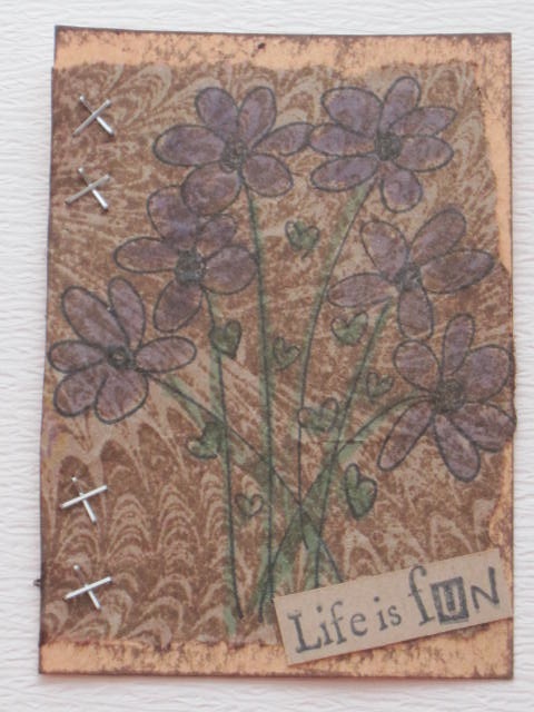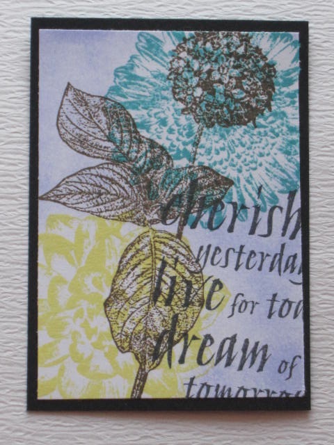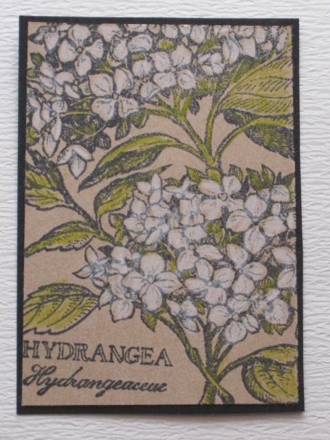 今日のカードは昔購入したスタンプのPSXのHYDRANGEAのスタンプを使ったATCです。使用ペーパー:モダンクラフト紙、ミ・タント紙使用スタンプ:PSX使用インク:MEMENTO、水彩色鉛筆