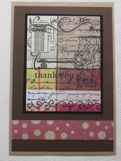 今日のカードはHero ArtsのCollage Thank Youのスタンプを使ったカードです。使用ペーパー:パターンペーパー、ミ・タント紙、モダンクラフト紙使用スタンプ:Hero Arts使用インク:Versafine