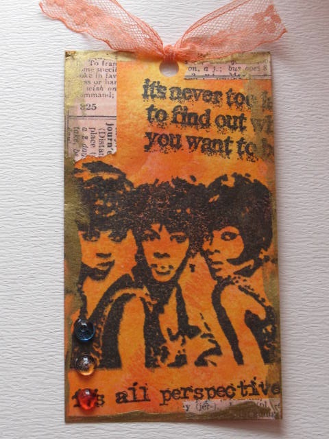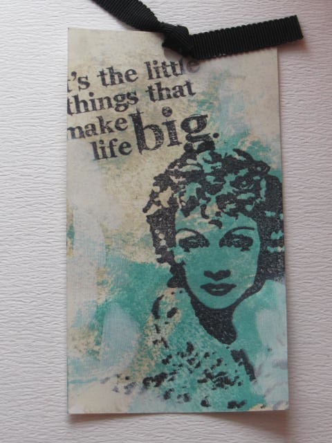 今日のカードはStamp SmithのFabulous facesのスタンプを使ったタグです。使用ペーパー:普通紙使用スタンプ:Stamp Smith、Stampers Anonymous(Tim Holz Collection)使用インク:DistressInk、MEMENTO、アクリル絵具その他:リボン