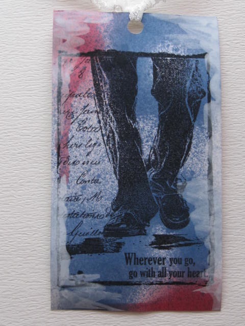 今日のカードはPaperbag StudiosのWherever You Goのスタンプを使ったタグです。使用ペーパー:普通紙使用スタンプ:Paperbag Studios使用インク:MEMENTO、walnut Ink、アクリル絵具その他:レース