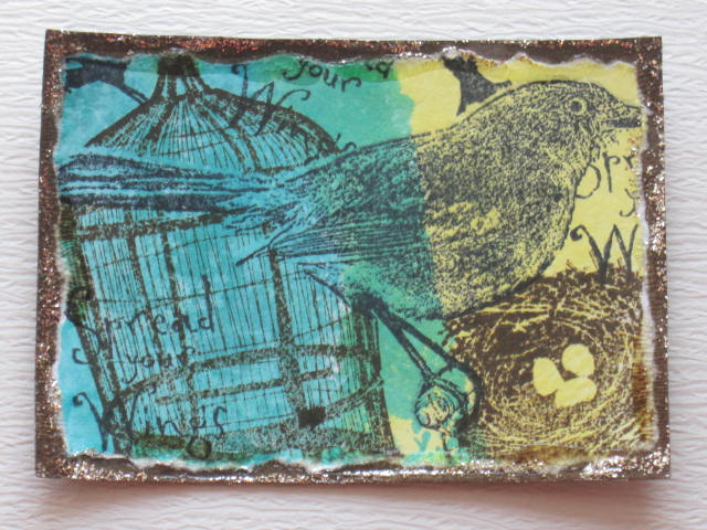 今日のカードはCIao*Carinaさんで購入したDarkroomDoorのLove Birdsのスタンプを使ったATCです。使用ペーパー:普通紙、ミ・タント紙使用スタンプ:DarkroomDoor使用インク:DistressInk、crackle paint、Stickles