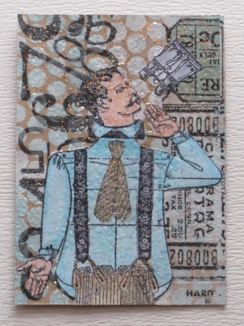 今日のカードはCiao*Carinaさんで購入した La BlancheのInventor with Glasses Collageのスタンプを使ったATCです。使用ペーパー:普通紙使用スタンプ:La Blanche使用インク:MEMENTO、コピックペン、カラーレスブレンダー