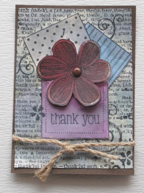 今日のカードはHero ArtsのCardArt Flower Thank Youのスタンプを使ったATCです。使用ペーパー:普通紙、ミ・タント紙使用スタンプ:Hero Arts使用インク:DistressInkその他:ブラッズ、麻ひも
