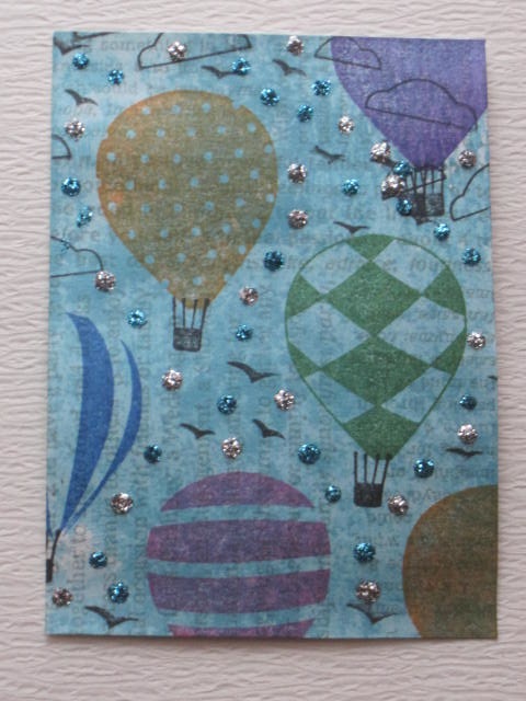 今日のカードはSTAMPIN UP!のUP, UP & Awayのスタンプを使ったATCです。使用ペーパ:普通紙使用スタンプ:STAMPIN UP!使用インク:DistressInk、MEMENTO、Stickles