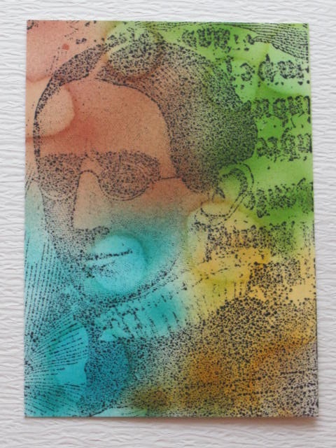 今日のカードはCiao*Carinaさんで購入したDarkroomDoorのRockstarのスタンプを使ったATCです。使用ペーパー:普通紙、半紙使用スタンプ:DarkroomDoor使用インク:DistressInk