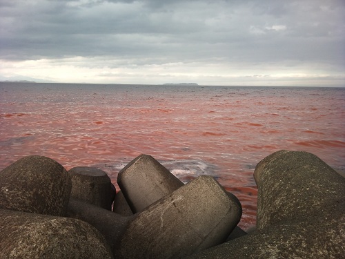 伊豆高原まで日帰りで旅行に行ってきたんですけど初めて見ました、赤潮を!!車で海岸沿いを走っていたらなんだか海が赤いんですよね(-o-;なんだか幻想的だな~とのんきな事考えてまして。近くで見ようと思って車を停めて見たらあらビックリ(^^;;