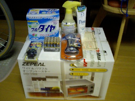 液晶テレビは当たりませんでした(^^ゞあ、なんのことかわからない方は、昨日の日記をご覧下さい(笑当たったのは・・・オーブントースター、アルカリ電池、髭剃り、歯磨き粉、腕時計(中国製の安物 笑)、洗剤、消臭剤、以上のセットでした。抽選会では、みんな盛り上がってくれて、よかったです。でも、会計があったので、酔えませんでした(笑終わって、ほっとしてます。
